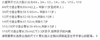 适合各年龄段使用的小提琴尺寸大小(供参考)