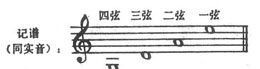 每根弦的空弦音高,可根据需要调整,但调整幅度一般不能超过上方小二度与下方小二度音程。