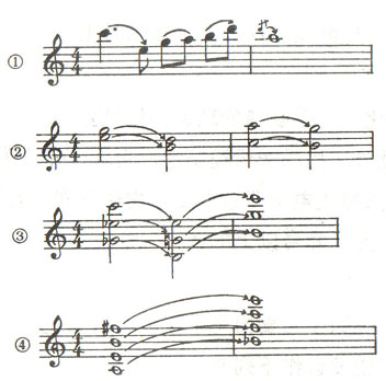 3、滑音。一般民族拉奏乐器所能演奏的滑音(参照二胡),弦控电子琴均可演奏。此外,尚可在两根弦,三根弦甚至四根弦上演奏双音、三音、四音滑音,如;