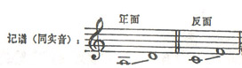 各鼓由大到小,编为1—5号。每个鼓两面的直径大小不同,所以一个鼓能同时定出两个不同音高的音。每面鼓的调音幅度极少超过纯四度。现将各鼓可奏出的音标示如下: