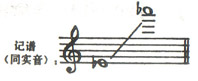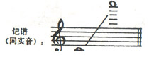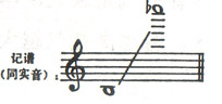 毒曹音域内各音的按音位置上,可奏出比按音高八度加五度的泛音(奏时唇部稍稍闭紧)。如: