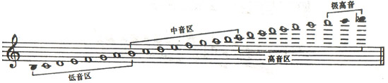 在常用音域以外,最低的几个音和最高的几个音,使用时要有准备(有过渡音),突然吹奏有困难,且发音不易准确。
