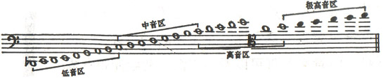 大管极高音区:难发音,音质发干,很少用。