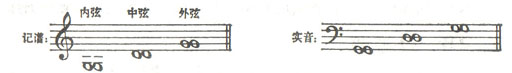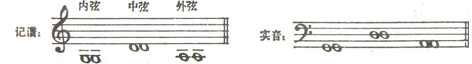 一些演奏者,为了使用的方便,按大三弦的空弦音定弦为G、d、g。