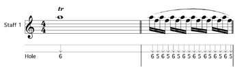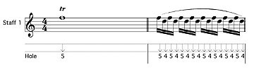 另外有一种口含个半孔的颤音方法(如右图),能增添粗野的蓝调韵味。 颤音裹还有一种效果是在吹奏八度和音的时候再加上颤音。所奏出来的音会很丰满。