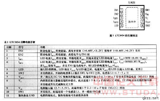 LTC3454的引脚排列如图l所示,各引脚的功能如表1所示。