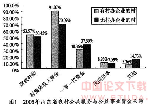 [摘 要] 农村公共品融资是中国农村财务管理面临的重要问题。税费制度改革之后,随着村提留和各种收费的废除,尤其是免征农业税后,农村公共管理可用资金明显减少,因而在废除这种制度后建立起一种新的、有效的农村公共品融资制度已成为公共财政建设的重点内容,也是摆在我们面前的一项重大课题。 [关键词] 税费改革;农村公共品;融资 公共品融资是农村财务管理的难点问题,农村公共品融资制度安排不当是农民负担不断加重的原因之一。笔者于今年暑假对山东省农村组织资金运动的现状进行调查,就农村税费改革对农村公共品融资制度的影响进行分析,并对完善农村公共品的融资渠道提出对策。 一、调查资料分析及结论 本次调查以经过培训的社会实践大学生返乡入户访问直接填写调查问卷的方式对山东省17个地市的100个县(市)、224个乡(镇)、251个村的农村公共品供给状况进行了调查,共发放调查问卷340份,回收有效问卷251份,涉及到山东省全部的17个地级市和近72.47%的县(市、区)。由于被调查对象的分布基本上覆盖了山东省各种类型的县(市、区),因此,调查资料能够比较客观准确地反映山东省农村公共品融资的现状。 在问卷的数据分析过程中,为了便于发现问题,笔者采用了分组对比的方法,由于村办企业上缴利润对村组织收入影响较大,因而按照被调查村是否有村办企业,将山东省农村分为有村办企业的农村和无村办企业的农村,对其财务状况、公益事业的发展及村级负债的情况进行比较分析,调查样本的基本分布情况如表1所示。 (一)农村公共品融资渠道短缺,主要来源于集体收入,占用了村集体经济建设资金,从而影响了集体经济的发展 调查结果表明,当前农村举办的公益事业主要有:村办小学、幼儿园、村道路的修建、田间水利设施的兴修、农村医疗、农村优抚、民兵训练、村中自来水设施建设、植树造林绿化建设、路灯及广播电视信号接收和节假日补贴养老金等。各项公共服务种类繁多,但用于该方面的资金来源却非常少,从调查结果来看,在调查的村中有27.44%的村可以得到财政补贴,有47.77%的村从村级组织的集体收入中获取资金,有19.67%的村采用一事一议方式收取资金,还有5.12%的村通过民间资本筹集这部分资金。其具体对比分析状况如图1所示。 另外,农民在公共产品方面的集资也比较多,据今年调查结果表明,有91.3%的被访村民表示,2000年以来,乡镇政府仍通过向农民集资或摊派的方式进行过公共设施项目的建设;有87.3%的被访村民表示,自2000年以来,村级组织通过向农民集资或摊派进行过公共设施项目的建设。其中,主要的公共设施项目依次是:道路建设、小学或初中校舍建设、水利设施等(详见表2)。① 资料显示农村公共品的供给所需资金大部分来源于农村的集体收入,这使本来就运转困难的村组织雪上加霜,其对集体经济组织的影响主要表现在:一方面,农村公共产品的供给占用了村集体经济组织的建设、发展资金,使村经济组织不能将资金运用到生产、建设性投资中,不能按照其资金运动规律进行正常的筹资、投资、分配活动,为农村带来直接的经济效益;另一方面村组织资金的有限性和财政转移性支付的缺损使农村公共品不能及时足额供给,又制约了农村地区经济和社会的发展,因为农村公共品能为经济发展创造有利的客观环境,从而带来间接的经济效益。 (二)农村公共品供给由于资金来源缺乏,加重了村级组织的债务负担 在调查中发现,农村税费改革后,农村集体收入减少,在一些经济基础比较差的村,没有财力偿还历年积攒的债务,同时新债又出现,村级债务已给村委会带来了沉重的负担。从调查情况来看,在调查的251个村中,有104个村有债务,其中10万元以下的48个村,10万~50万元的41个,50万~100万元的8个,100万元以上的还有7个村,平均每村负债额达502 573.17元。形成原因很多:其中由原集体经营企业形成的负债占负债总额的47%,村级公益事业形成的负债占31%,村组干部垫交的税费提留等占12%,还有10%由其他原因形成的负债。具体构成情况如图2所示。 笔者在调查中发现,村办企业办的比较好的村,债务要少的多,在没有村级债务的147个村中,有村办企业的村占70.83%,具体分布情况如表3所示。 表3中数据说明了这样一个问题,在村办企业发展的比较好的村,因为收入来源相对宽裕,为公共服务和公共产品的供给垫支了部分资金,从而减少了部分债务。但在没有村办企业且经济基础比较差的村,由于其收入来源极少致使村级债务无法偿还,且有增长势头。 二、税费改革对农村公共品融资制度的影响 (一)农村税费制度改革免征农业税后,村委会可用资金短缺,农村公共品的供给和农村集体经济的发展受到影响 税费改革前,村委会的筹资来源主要有:一是向农民收取各种统筹提留以及土地承包费、农村教育附加费、计划生育费、优抚费、民兵训练费、乡村道路建设费等;二是向农民收取教育集资、生产和公益事业集资以及各种摊派、罚款和其他收费;三是银行、农村信用社借入有偿使用的各种款项;四是在制度之外对“三农”收费。税费改革后,尤其是免征农业税开始,为了规范农村税收制度、财政制度,减轻农民负担,原来的许多收费项目,如乡村统筹、提留、农村教育集资、屠宰税等被取消,按照规定,村委会财力明显降低。在相当多的地方,特别是缺