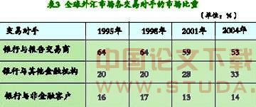 内容提要:本文从国际外汇市场的交易量、外汇衍生产品的动向、外汇交易主体的地位、外汇市场的占有份额、外汇交易的集中化程度等角度,详细阐述了当前国际外汇市场的最新变化,并由此得到启示,对上海建成国际金融中心,对上海外汇市场的发展,提出了一系列政策建议。 关键词:国际金融外汇市场启示 随着全球经济一体化的发展,各国间的金融系统越来越密切,国际外汇市场成为全球金融市场中最活跃、最开放的组成部分,在开放经济的背景下,包括新兴国家在内的众多发展中国家,外汇市场自身在传统交易日趋活跃的同时,不断创新的交易品种和交易方式,为外汇市场的深入发展注入新的活力。 一、国际外汇市场的最新发展 对国际外汇市场发展现状及趋势进行最全面、最权威考察的,是国际清算银行(Bank for International Settlements)每三年进行一次的,对各国中央银行就外汇市场和衍生品市场发展所进行的调查。根据调查结果,当前国际外汇市场呈现出如下特点。 1、全球外汇日交易量巨大,并呈大幅回升之势 自1995年以来,全球外汇市场各外汇交易工具的日均交易量都在一万亿美元以上,今年4月创出20180亿美元日均交易量的历史记录。除今年前期相比有所下降外,其他调查年份均呈现增长势头,其中尤以今年增幅较大,比今年4月的日均12670亿美元增长59%。在各交易工具中,货币互换的增长幅度最大,从今年4月的日均70亿美元跃升到今年4月的210亿美元,增幅为200%;期权的增长幅度位居其次,增长近一倍。(见表1) 2、外汇衍生品交易占绝对优势,即期交易的重要性有所下降。 自1995年以来,衍生品交易一直高于即期交易量,并处于稳步上升之中。衍生品占全部外汇交易量的比重,从1995年4月的58%,上升到今年的68%,其交易量已达同期即期交易量的两倍之多。各交易工具中,外汇互换衍生品的交易最活跃,占到全部外汇交易的49%。即期交易的重要性有所下降,但目前其市场地位已趋于稳定,市场比重保持在近三分之一的水平,而且在所有外汇交易工具中,仍居第二的位置。(见表2) 3、外汇交易对手以报告交易商为主,其他金融机构的地位趋于上升。 在国际外汇市场各交易主体中,报告交易商占据主导地位,这主要是指活跃在外汇市场上的大型商业银行、投资银行和证券公司,他们既从事外汇的自营业务,也从事代理业务,交易通常经由诸如EBS或路透的电子交易系统实现。尽管报告交易商的交易量比重自1995年以来呈下降之势,但其市场份额均在一半以上,今年4月为53%。除报告交易商以外的其他金融机构,这主要指小型的商业银行、投资银行和政券公司,及各种基金、保险公司、中央银行等,其市场地位正在稳步上升,交易量比重从1995年4月的20%提高到今年4月的33%。此外,非金融类最终客户也占有一定的市场份额,他们主要是公司和政府等,其交易量比重今年4月为14%。(见表3)