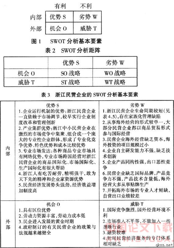 [摘 要] 浙江是民营企业发展较好的一个省。本文通过SWOT分析方法对浙江民营企业海外经营的优势、劣势、机会和威胁进 行了详细分析,并提出了浙江民营企业进一步发展的战略与对策。 [关键词] 浙江;民营企业;海外经营;SWOT分析 一、浙江民营企业组成与海外经营情况