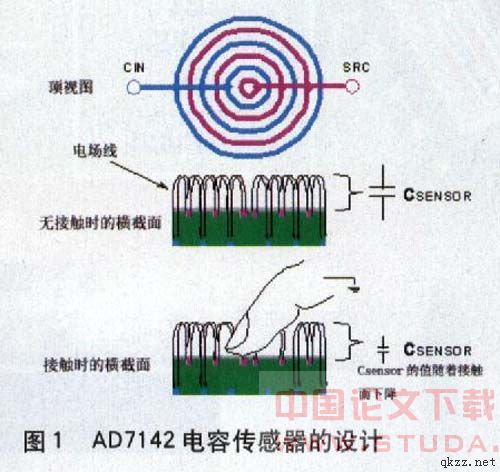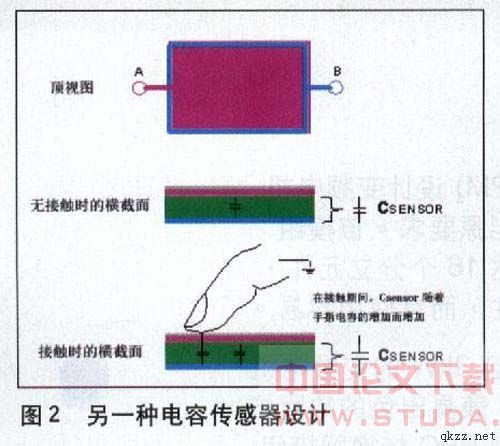 因为采用了传统机械开关,用户使用电容传感器接口的方式直接与各种工作条件下(可靠性)接触传感器的响应度(员敏度)梧关。本文将介绍一些通用电容传感器模拟前端测量方法 灵敏度 电容传感器的灵敏度是由其物理结构、测量电容的方法和精确比较电容相对于接触门限电平变化的能力而决定的。采用传统印制电路板(PCB)方法制造的电容传感器的测量范围通常为1~20pF,因而很难准确地检测微小变化。虽然有几种测量这些电容微小值的方法,但采用16位电容/数字转换器(CDC)的高精密测量方法仍然具有明显的优势。 基于PCB设计的电容传感器 制作在标准印制电路板或挠性印制电路上的电容传感器都使用了相同的铜材料来做信号线。在这两种情况下,传感器的最大灵敏度都由传感器的物理尺寸、电介质常数以及覆膜厚度所决定。例如,带有5mm塑料覆膜的3mm厚传感器不如带有2mm塑料覆膜的6mm厚传感器灵敏。 我们的目标是开发具有正确响应并且满足人体工学要求的电容传感器。在某些应用中,传感器可能会很小,从而使用户接触面上产生微小的电容变化。 图1和图2显示了在印制电路板上设计电容传感器的两种常用方法。图中给出了在用户接触期间施加激励信号时传感器的响应特性。虽然根据用户接触方式的变化,传感器电容会有所不同,但是传感器的性能在这两种情况下相差不大。