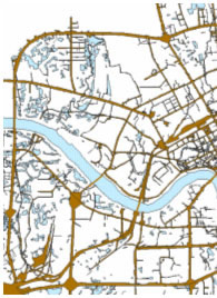 3、过程及方法描述 3.1 数据准备 3.1.1 数据情况 本篇文章所处理的主要数据为高分辨率影像,同时还利用了矢量的GIS数据,具体如下: 广西南宁市QUICKBIRD影像,今年10月份获取,真彩色产品,包括红、绿、兰三个波段,tiff格式,空间分辨率0.61米。 城市路网和水系的矢量文件,ArcInfo的shape格式文件(如图2)。