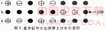 3.2PCB板的设计 (1)至少用4层PCB板,将LVDS信号、地、电源、TTL信号分层布局。在实现设计中采用了8层板以尽量满足要求; (2)将陡的CMOS/TTL信号与LVDS信号隔离,最好能布在不同层上,并用电源和地层隔开; (3)保持发送器和接收器尽可能靠近接插件,连线长度愈短愈好(<1.5英寸),以保证板上噪声不会被带到差分线上,而且避免电路板及电缆线间的交叉EMI干扰; (4)旁路每个LVDS器件,分布式散装电容或表贴电容放在尽量靠近电源和地线引脚处; (5)电源和地线应用宽的布线(低阻抗),并保持地线PCB回路短而宽; (6)终端负载用100Ω(误差<2%)表贴电阻靠近接收器输入端来匹配传输线的差分阻抗,终端电阻到接收器输入端的距离应小于7mm; (7)将所有空闲引脚开路(悬空)。 3.3电缆和接插件的选择 应用中选择了双绞线平衡电缆,并在外层加屏蔽;接插件选择标准连接器,在连接器上差分信号通常连接在一行中靠近的两个连接脚上,示意如图3所示。 总之,应用LVDS技术在系统设计之前,应优先考虑以下几点: (1)必须优先考虑电源和地在系统中的分布; (2)考虑传输线的结构及其布局布线; (3)完成其余电路部分设计,随时观察和修整布局。 LVDS数据传输标准比传统的RS-232、RS-422、RS-485等标准有很大的优越性。在雷达系统中应用LVDS技术来完成数据传输,将会降低系统设计的复杂,使系统有很高的可靠性、高数据率、低噪声/低电磁辐射和低成本。 |
