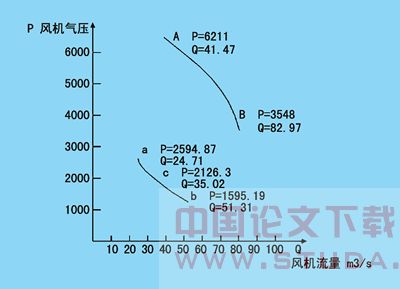 (1) 表2工况下转速计算: 从图1(abc)性能曲线所示,为了方便计算,近似认为性能曲线成线性关系,即: (Pc-Pb)/(Qc-Qb)= (Pa-Pb)/ (Qa-Qb) (5) 由(1)~(5)式可求得变频后的风机转速为: