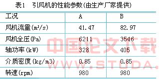 型号为Y4-60-11N022.5D,其风机性能参数如表1所示: