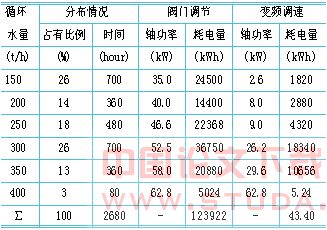 表1 系统一次网循环水泵两种方法调节流量时的轴功率比较