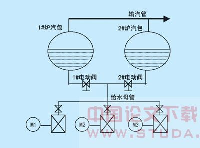1 引言 工业蒸汽锅炉的过程控制系统包括汽包水位控制系统和燃烧过程控制系统,两系统在锅炉运行过程中互相耦合,所以控制起来非常困难。在此,我们暂不考虑系统间的耦合,只是对蒸汽锅炉的给水系统进行变频改造。 某企业有2台20T燃煤蒸汽锅炉,如图1所示。这2台锅炉通过1个给水母管分别给各自汽包供水,用汽量小的季节,2台锅炉只运行1台,当用汽量较大时,则必须2台锅炉同时运行。由于给水泵额定功率为37kw,一般情况下,1台锅炉运行时,只开1台给水泵裕量仍较大,而2台锅炉同时运行且用汽量较大时,只开1台给水泵无法满足需要,而开2台给水泵后,相对单台锅炉运行时,裕量更大。由于2台锅炉分别由2套DCS系统控制各自的电动阀门调节各自汽包的给水量,运行中,阀门开度较小造成给水母管压力较大,不仅浪费了大量的电能,较高的水压还对管道、水泵叶轮和阀门造成损害