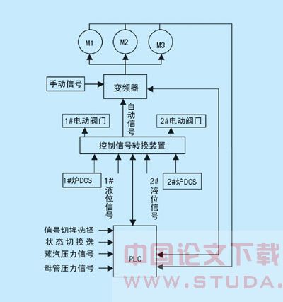 在本方案中,充分利用了锅炉层有的DCS控制系统,同时增加了变频器、可编程序控制器(PLC)和控制信号转换装置。 (1) 硬件控制系统 a) 西门子MM430变频器 MM430变频器是西门子公司最新研制生产的一种适用于各种变速驱动应用场合的高性能变频器(调试简单、配置灵活),它具有最新的IGBT技术和高质量控制系统,完善的保护功能和较强的过载能力以及较宽的工作环境温度,安装接线方便,两路可编程的隔离数字输入、输出接口以及模拟输入、输出接口等优点,使其配置灵活多样,控制简单方便,易于操作维护。
