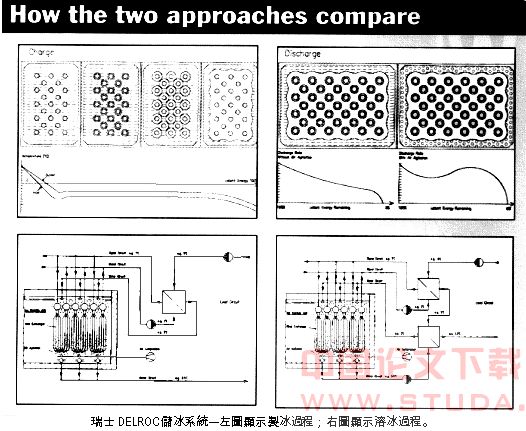 在安装方面,大型 DELROC 系统通常是安装在顾客预备的钢筋水泥槽中,或安置于旧储装槽中。当热交换器的管排(exchanger mats)配置具弹性,储冰槽体积将可依据需求作改变。当安置空间受到限制时,DELROC 储冰槽的高度可缩短至4.2cm,相当于每平方公尺高度的冰块面积代表 300kW/h 的冷冻储存量。 保证(Guarantee) 当与传统的直膨蒸发制冰系统(direct evaporating ice builder systems)相比较,DELROC 系统的冷却水回路中会被参入些许的卤水(brine)或乙二醇与水的混合物(glycol/water mixture),以避免冷在摄氏0℃下作循环时的结冰现象。 在作区域性制程冷却的储冰时,两台DELROC系统可以串联相连的方式来从事制冰/储冰的作业,以减缓卤水主机的冷冻负荷 (冷冻需求温度可被提升1至4℃)。藉此组合方式,区域性制程冷却的效能可提升 30% 以上。 |