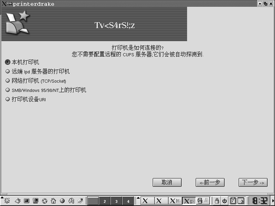 图6 配置调制解调器型号 打开“Hardware List”,用鼠标单击“调制解调器”选项。选择调制解调器型号之后,单击“运行配置工具”按钮,选择调制解调器的“硬件数据”型号后,用鼠标单击“确定”按钮即可。从图6可以看到,笔者使用的是HCF调制解调器,也就是常说的软猫。这表明采用2.4内核版本的Linux发行版本支持的硬件数目大大增加了。 6.配置打印机 用鼠标单击“控制中心”硬件选单的打印机图标,进入“打印机配置向导”。 (1)选择打印机位置。本文以本机打印机方式为例,介绍Linux桌面工作环境下的打印机配置,见图7所示。