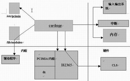 图1 PCMCIA网络适配器工作示意图 首先来看一下PCMCIA网卡的工作示意图1。其中cardmgr是一个守护进程负责监控PCMCIA插槽,有需要时载入其它的驱动程序,并且执行使用者阶层的脚本来反应卡片的插入与移出。它被用来监视卡片状态的插断是在cardmgr处理/etc/pcmcia/config文件之前由低级的插槽来驱动程序模组 (i82365)。cardmgr首先通过CIS获取时钟频率,然后然后访问/etc/pcmcia文件,然后访问内存、中断和输入输出系统,最后通过 /Lib/modules 查询驱动程序。 准备工作 软件方面,需要一套能够正常运行的、内核为2.4.x的Linux系统,推荐使用2.4.18以上的内核,glibc应该在2.2版本以上, GNU C/C++编译器GCC应在 2.95以上及其对应的开发工具。另外最好安装Linux所有程序的函数库、PCMCIA-CS卡驱动程序(版本3.1.33,PCMCIA接口的适配器用到)。硬件方面,计算机CPU为PⅡ400MHz以上,内存64MB,预留一个PCI或ISA扩展槽,一个经过www.Linux.org 认证的PCMCIA的无线网卡。 随着Linux网络技术的快速增长,硬件厂商大大加速对Linux技术支持的硬件产品的开发,使得支持Linux的无线网卡的数量在过去的一两年里显著增长。对于有些设备,配置无线连接非常简单。只要在用户使用的Linux机器中插入无线网卡,在设置过程中单击鼠标,并输入正确的网络参数就可以了。但是,如果其中所装的Linux发行版本未能检测到无线网卡或错误地检测了它,用户很可能会处于未连通状态,而且搞不清楚下一步该干什么。希望这里描述的背景知识和相关过程能使用户掌握所需技能,以便排除安装中的故障,使网卡正常运转。基于朗讯芯片组的PCIMCIA无线网卡的安装比较简单,笔者使用的Cisco Aironet Wireless 802.11b在Mandrake 8.2 Linux下安装时,Linux系统可以顺利地找到设备驱动,并进行相应地配置。 实例解析 CompaqWL110 基于朗讯芯片组的PCIMCIA无线网卡CompaqWL110的安装过程如下。 1.将网卡安装到计算机; 2.使用命令在/etc/pcmcia/config文件中添加以下内容: