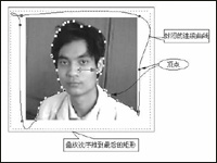 单击菜单中的“插入/图片”选择插入一张要处理的图形照片。使用“图形”工具栏的“连续曲线”工具,沿要抠取对象的边沿依次单击鼠标,将不需要部分围起来,最后回到开始点单击完成封闭曲线绘制。此时,如果你觉得不够精确,还可双击曲线进入编辑顶点状态,通过拖动顶点进行精细调整,如图1所示。然后,画一个足以框住图片和曲线的矩形放在最下面。