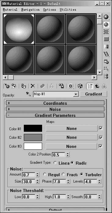 回到“Material Editor”面板,在“Gradient Parameter(梯度参数)”卷展栏中将“Gradient