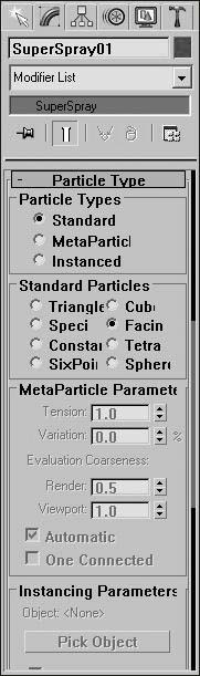 进入“Modify(修改)”命令面板,在“Basic Parameter(基本参数)”栏中找到“Particle