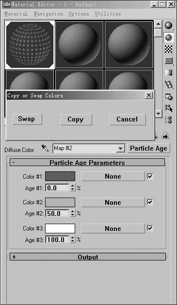 回到“Material Editor”面板,在“Particle Age parameters”卷展栏中将Color