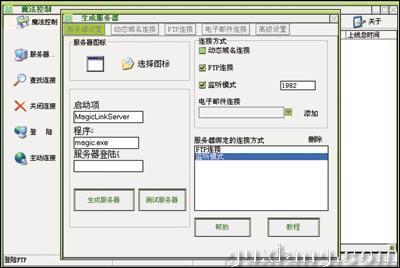 软件运行后,点击左侧的[服务器]按钮,进入如图1所示界面。对于启动选项名(写入系统注册表启动项里的名字)和启动程序名(服务器运行时候的名字)两项,使用默认值即可;设置服务器登录密码;接下来需要选择服务器的连接方式,共有四种,使用其中一种即可。也可以同时使用多种,即连接方式可以混合捆绑。