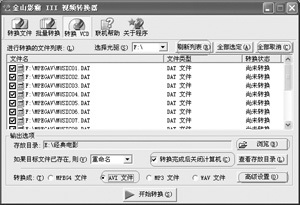 3、选择需要转换的VCD文件,默认的情况是全部选中,如果只想转换某一个文件的话,先点击“全部取消”,然后再选择要转换的文件(如图1)。