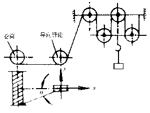 2.1钢丝绳中心线与卷筒、滑轮轴线中点连线产生 偏角的影响 图1是起升机构的简图[2]。在起升作业时,钢丝绳从卷筒上绕进或绕出,并由卷筒一端移向另一端,使钢丝绳中心线与卷筒、滑轮轴线中点连线产生偏角α,若钢丝绳的最大拉力为F,则: Fx=Fcosα Fy=Fsinα
