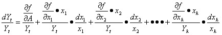 式中:A表示区域技术进步。对上式求全微分,两边同除以,整理得: