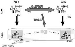 在PIM层次上,模型的组合重用规则是用来描述如何对现有模型进行扩展或者组合,并没有改变他们,这是MDA方法的基本原则,即保持某些系统的PIM模型的稳定;在PSM层次上,PIM模型所对应的PSM模型保持不变,即PSM模型的代码在新的系统中并没有改变;而且,根据PIM模型组合重用的目的,同样的PSM模型将被用于多个新的系统中。
