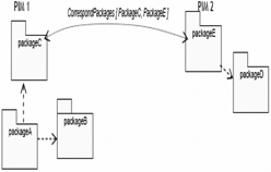 (2)组合规则。通信规则的确立使得原先位于不同PIM模型中的元素能够进行通信,并不能明确定义参与通信的包、类等元素怎样组合在一起构成新系统的模型元素,下面就需要通过定义“组合规则”将原本属于不同PIM模型的元素结合为新模型的组成元素。