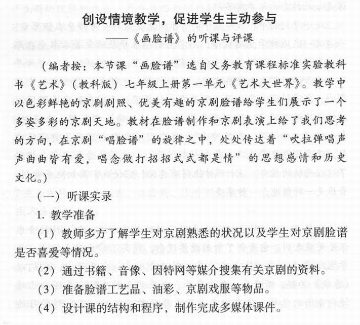 创设情境教学,促进学生主动参与《画脸谱》听课与评课
