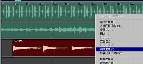 现在,在这个贝斯波形上右键选择"循环重复",和第一轨的操作完全一样,你可以控制循环的次数,轻松完成贝斯的录制.
