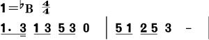 第二乐段(B),是一个相当于乐段的展开性段落,由四个乐节和一小节补充构成。第一乐句