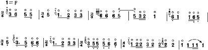 第一段是乐曲的引子,节拍比较自由,旋律性不甚明显。