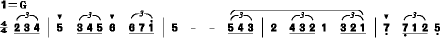 副部主题转入G大调。这是一个生动、活泼、欢快、跳跃的舞曲性旋律。它留给人们的联想是:那熙熙攘攘的人群,在欢乐地歌舞,在不停地涌动……