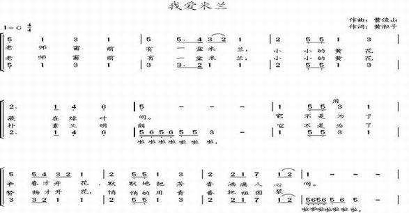 米兰,并不是一种名贵的植物,也不是绚丽多姿的花卉,但它能静静地散发着幽香,而以它来比喻教师的品格则是十分相宜的。这首歌曲正是将老师比作为米兰,颂扬了教师默默奉献的崇高精神。歌曲由两个乐段组成。