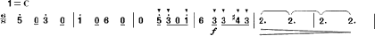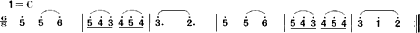 6.跟琴看着教材上的谱例,哼唱乐曲的第一、第二主题,以加深对这二主题的印象。