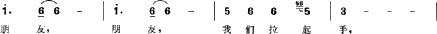 这一主题贯串全曲,刻画了青年的纯朴、真诚的形象。随后进入二声部合唱,主旋律升起在高音区,节奏拉宽,发出了对友情的呼唤: