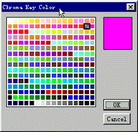 在该对话框左边的颜色调色板中,带有粗重边框线的颜色方块是当前使用的Chromy关键色,在Authorware中,Chromy关键色的缺省值是洋红色。