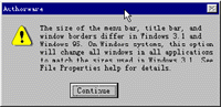 该对话框的意思是:Windows 95的菜单栏、标题栏和窗口边框同Windows 3.1的不同,如果选择该选项,Authorware会把应用程序中所有的窗口都改变为可以匹配Windows 3.1的情况。