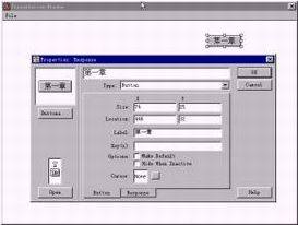 好了,我们已经创建了一个简单的按钮响应,但这些还远远不能满足程序设计的需要。要具体设置该响应,需要双击流程线上响应类型的图标,打开图中所示的展示窗口和【Properties:Response】对话框,来具体设置按钮响应。