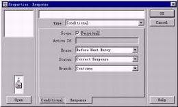 单击〖Response〗命令按钮弹出条件响应类型的〖Response〗对话框。如图所示。该对话框中的〖Active If〗不可用,其它选项的设置同上述的〖按钮〗响应类型和〖热区〗响应类型的设置基本相同。请读者自行学习和体会。