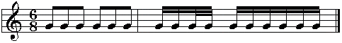 再比如6/8拍也是复拍子,它是以八分音符为一拍,一小节有6拍,也可以拆成两个3/8拍。也是以八分音符为一拍,仍然是以八分音符为一单位形成两组。