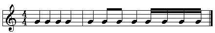 音乐总是跌宕起伏,强弱交替出现,这种交替出现不能是杂乱无章的、随意的,必须按着旋律的结构,组织成最小的、有规律的组织,在这个基础上进行才可以。这个最基本的基础,就是小节。规律是这样的,强拍和弱拍交替进行,每当一个强拍出来,不管后面跟不跟弱拍(1/4的就没有弱拍跟在后面)或是有几个弱拍,在第二个强拍出现之前这即构成了一个小节,当第二个强拍出现之后,又形成第二个小节,这样循环往复。比如,一个强拍后面跟着一个弱拍,这就是“二拍子”,一个强拍后面跟着两个弱拍,那么这就是“三拍子”,强拍后面出现三个弱拍子,那就是“四拍子”,以此类推,总之,在一小节里是不能出现两个强拍的。除非在弱拍上,特别标上了强音记号。