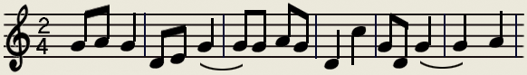 单拍子和复拍子在记谱的时候,必须要按着拍子号,把散音符有机的、按着拍子连起来记,形成一个音组,这种有规则的记谱法也叫音符组合法,怎么来形成有规律的音组呢?首先我们把复拍子拆成单拍子以单拍子为单位来进行音符组合。比如,4/4拍,是以四分音符为一拍,一小节有四拍,它也是由两个2/4拍组成的,而2/4拍也是四分音符为一拍,这样在写谱子的时候,应该以四分音符为单位,这样既有规律,而且在视谱时也比较清楚、简单易读。