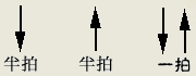 “拍子”用简单的话来说你用一个手掌来拍。手掌一下、一上,这就叫做一拍,(如果用两只手对拍的话,那么一张一合,就叫一拍)单单拍下去,叫做半拍,再抬起来,也是半拍,这样算起来一上、一下加起来就是一拍。(等于半拍加半拍)